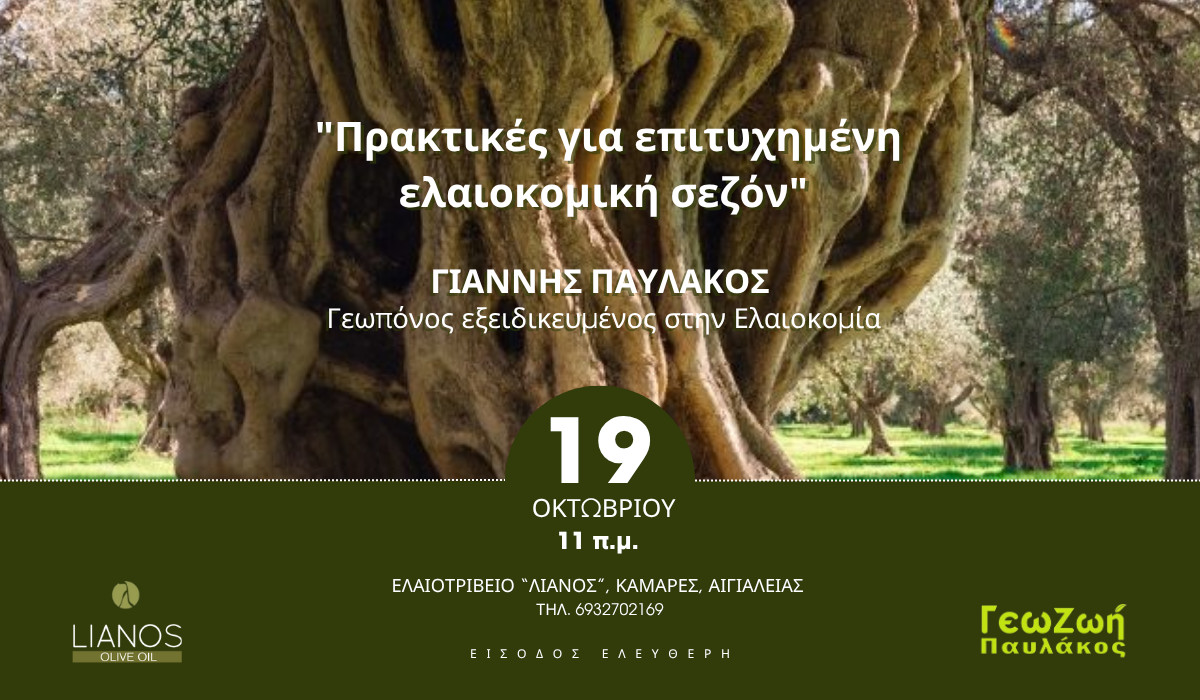 Εκδήλωση: «Πρακτικές για επιτυχημένη ελαιοκομική σεζόν»