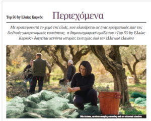Το πρόσφατο τεύχος του περιοδικού Ελαίας καρπός με τίτλο The top 50 Ελαίας καρπός κορυφαίες επιλογές κατέταξε το ελαιόλαδό μας στα 50 καλύτερα προτεινόμενα της ελληνικής αγοράς.